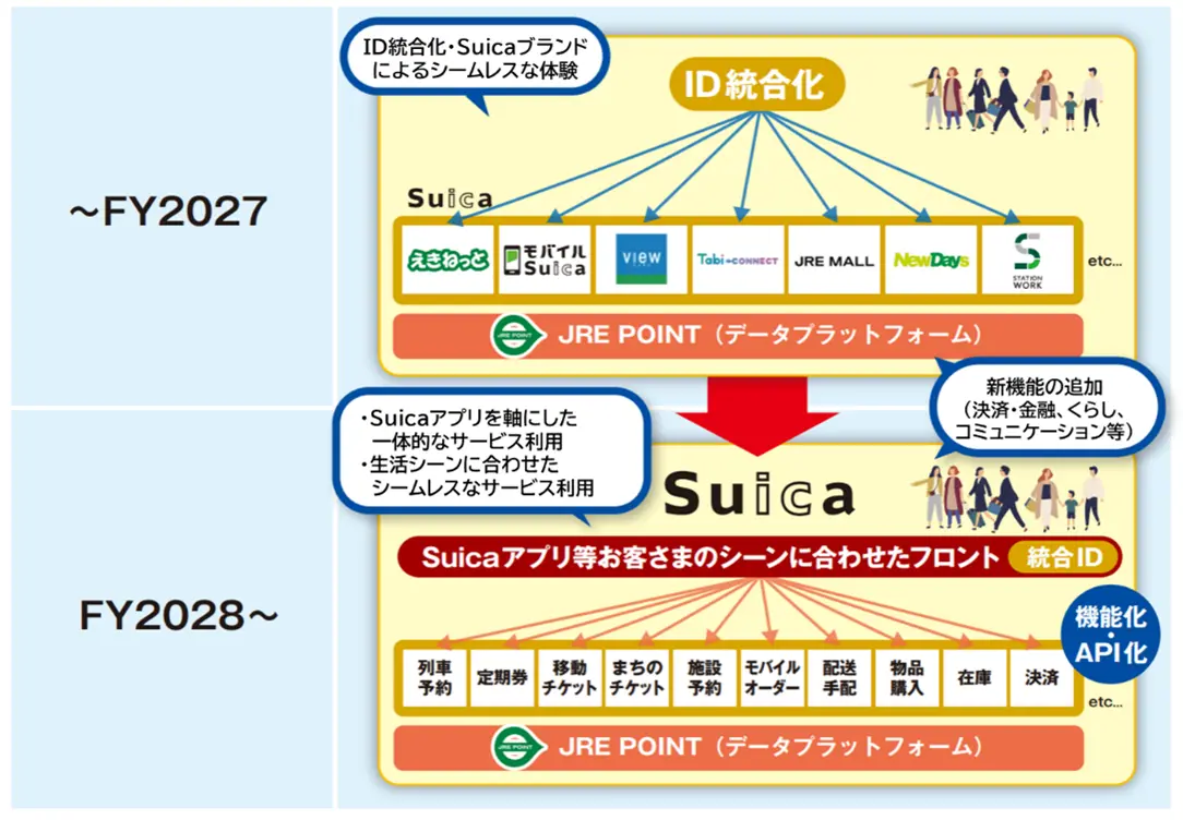 JR東日本が掲げる中長期ビジネス成長戦略「Beyond the Border」の基盤は新たなデジタルプラットフォームの構築。JRE IDは、その一端となるグループのID統合化を担うことになる。2027年度までにグループの各種サービスで使えるようにし、その後は新たな「Suicaアプリ」を軸にした一体的なサービス利用を可能にする。