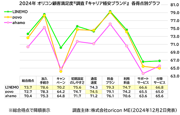 キャリア格安ブランド:「LINEMO」が3年連続の総合1位