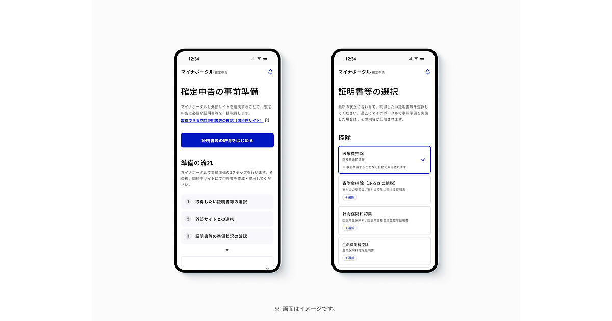 デジタル庁は、2024年(令和6年)分の確定申告に対応した「確定申告の事前準備」ページの提供を1月6日に始めた、と同日発表した。スマートフォンやパソコンからオンラインで事前準備が可能になった。行政手続きのオンライン窓口「マイナポータル」と外部サイトの連携によって確定申告に必要な証明書などが取得できる。