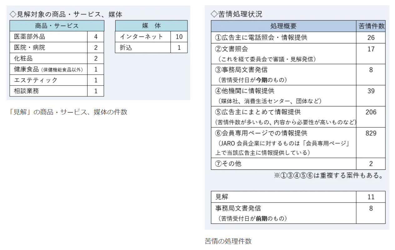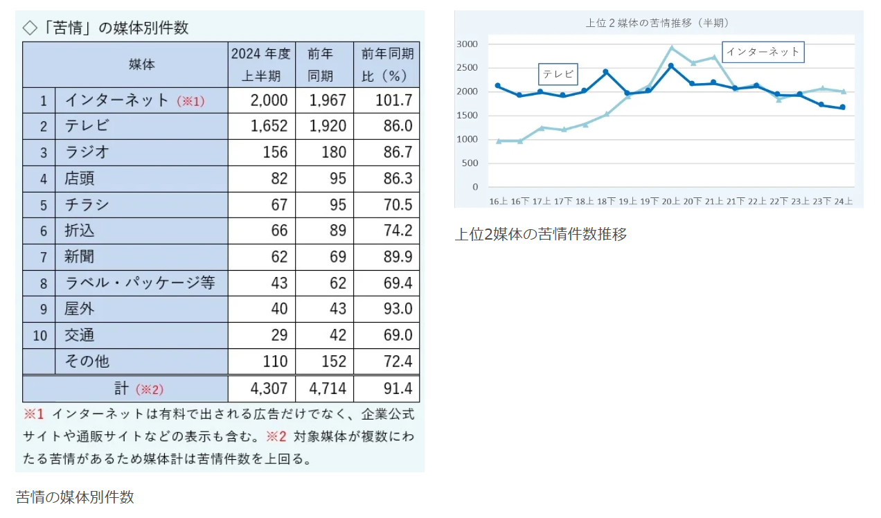 日本広告審査機構(JARO)は、広告に対する苦情に関して、2024年度上半期(4月~9月)の統計を発表した。本調査は1974年から年2回公表している。