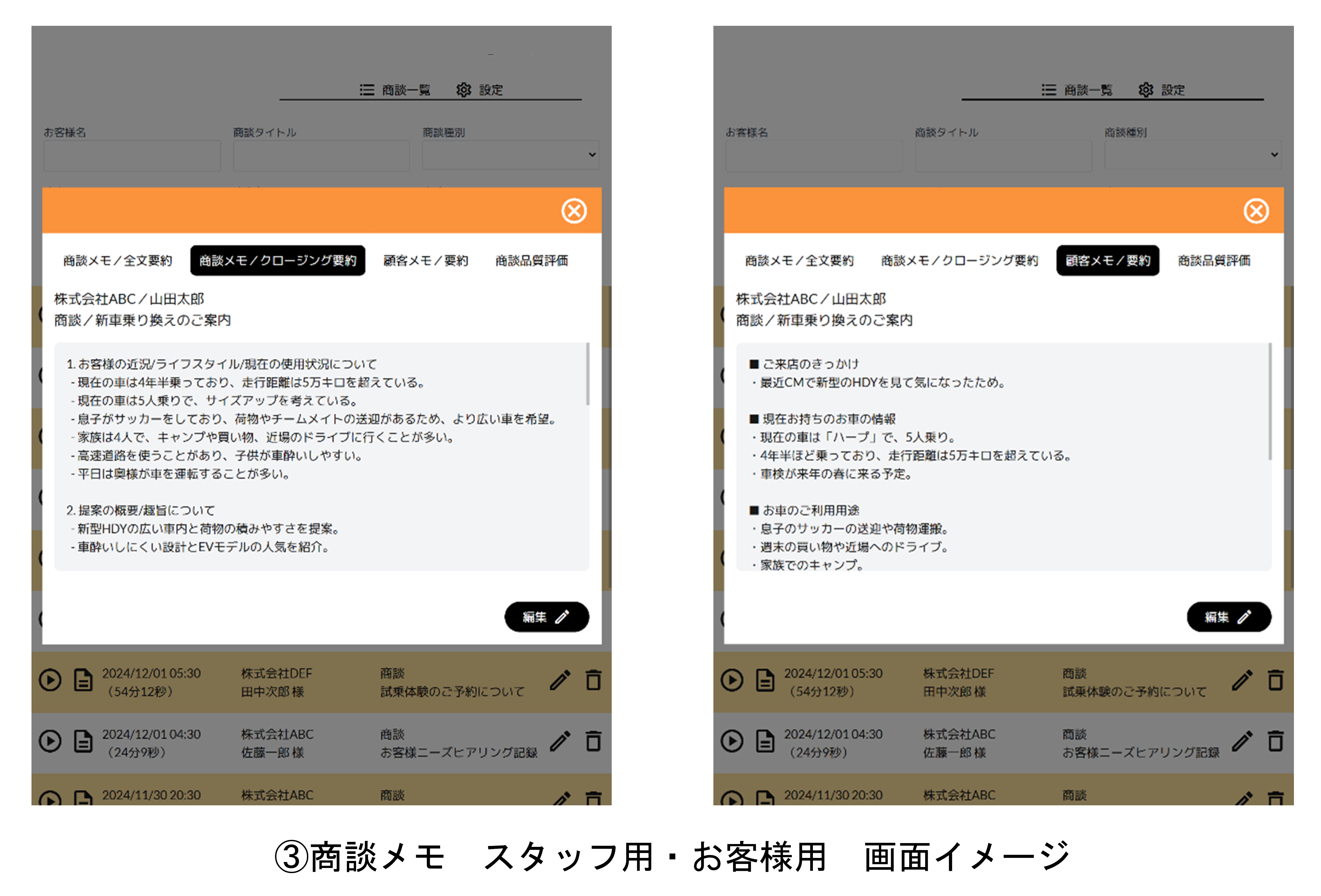 自動車販売店、不動産会社、金融機関の営業所など各業種では対面商談に関し、スタッフの商談力が判断できなかったり、商談から得た顧客ニーズや次の行動を記録する商談メモの作成精度にばらつきがあったりすることで、営業機会の損失や信用低下につながる課題を抱える。商談メモの作成に時間を取られることもあり、アプリでこうした問題を解決する。