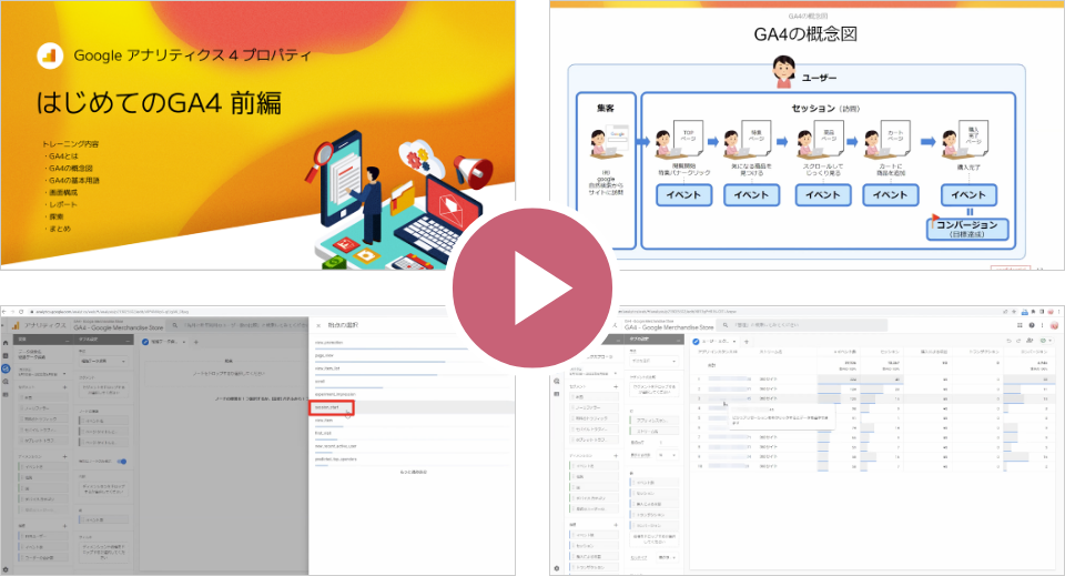 GMPプレミアムサロンの「トレーニング動画」は、GA4の基礎知識から実践的なスキルまで段階的に学べる。初めてGA4に触れる人でも安心して学べるように、基本的な概念や主要な用語の解説から具体的な操作方法、レポートの活用方法まで解説されている。短時間で要点を学べる「ショート動画」もあり、特定のトピックやスキルをピンポイントで学べる。体験版では初心者向けの基本編集中講座や、ショート動画の一部が視聴できる。