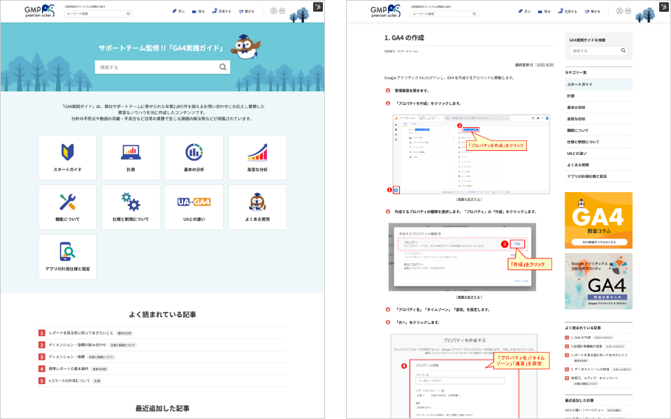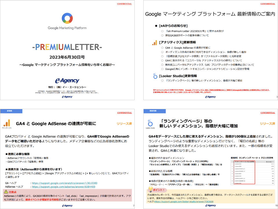 データ分析における実務的な課題を解決する「GA4実践ガイド」も提供し、日々の業務で発生しやすい問題をわかりやすく解説する。体験版ではサポートチームに寄せられる「よくある質問」を紹介する。GMPツールのアップデート情報や、すぐに実践できる活用Tipsなど最新情報を毎日届ける「プレミアムレター」もあり、体験版ではこれまで配信されたバックナンバーの中から厳選された内容の一部を見ることができる。