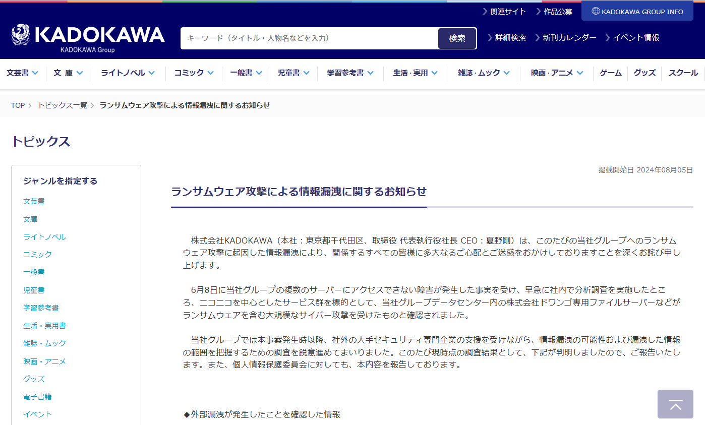 3位 6月9日 KADOKAWA「サイバー攻撃」が示した経営リスク