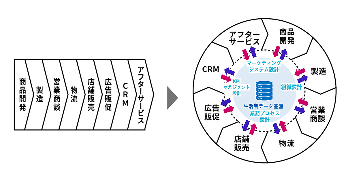 デマンドチェーンは、生活者の需要を起点に販売・調達・生産といった供給者側に向かう情報の流れ。生活者との接点から生成される各種データを生かし、企業活動の各場面で機動的な意思決定を可能にするのがデマンドチェーン変革で、今後重要になるとされる。博報堂とNTTデータはデマンドチェーン変革への対応力強化のため2024年11月に協業を始めた。