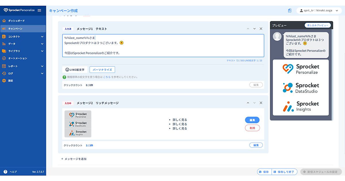 CX(顧客体験)改善プラットフォーム事業のSprocket(スプロケット)は、MA(マーケティングオートメーション)プロダクト「Sprocket Personalize」のβ版機能で、コミュニケーションアプリ「LINE」へのメッセージ配信機能「Sprocket Personalize for LINE」の提供を始めると2月6日に発表した。LINEの「Messaging API」を呼び出しメッセージ配信する。LINE公式アカウントの管理画面と異なり多様なデータソースを統合活用できる。