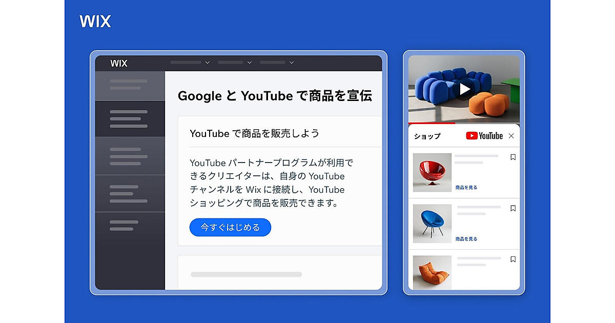 GoogleのEC商品検索「Googleショッピング」との関係も強化。Wixストアのユーザーは、YouTubeプロファイル上で商品が店舗形式で表示できる。Wixストアのユーザーは、Wixダッシュボードの「商品・サービス」セクションから「販売チャネル」を選択し「Google & YouTube」を選ぶと、YouTubeショッピングの管理や機能の活用が可能になる。