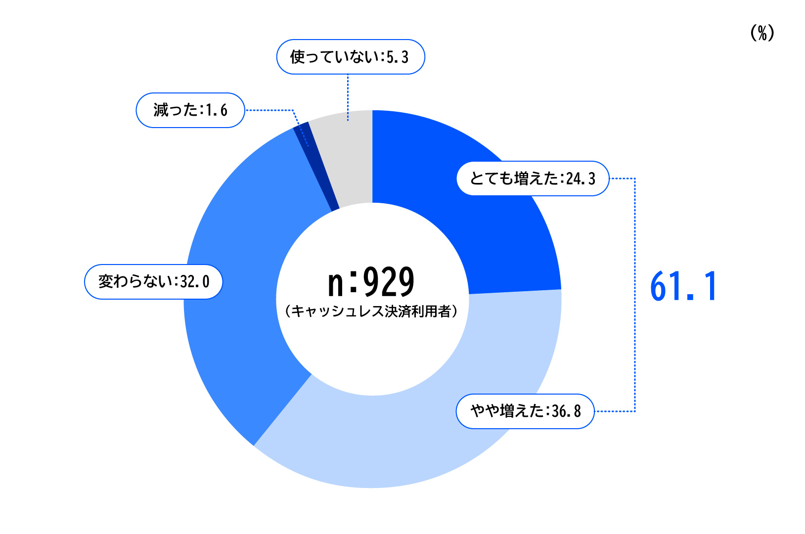 また2024年以降、モバイル決済の利用回数が増えた人は61.1%となり、モバイル決済の普及が進んでいることがわかった。