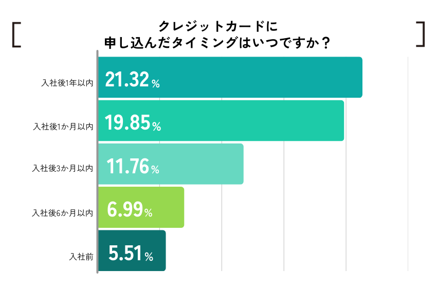 クレカ申し込みタイミングは、「入社後1年以内」が最多