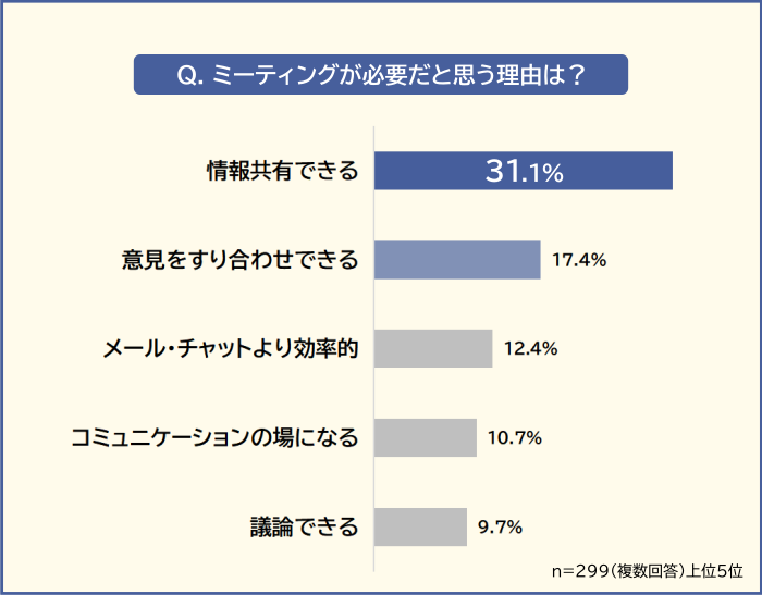 ミーティングが必要だと思う理由、最多は「情報共有できる」