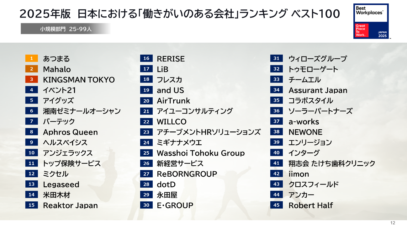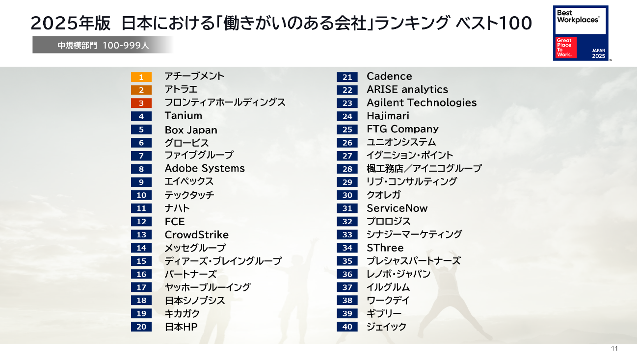 Great Place To Work Institute Japan(働きがいのある会社研究所)は、2025年版 日本における「働きがいのある会社」ランキングを発表した。今年で19回目の発表。