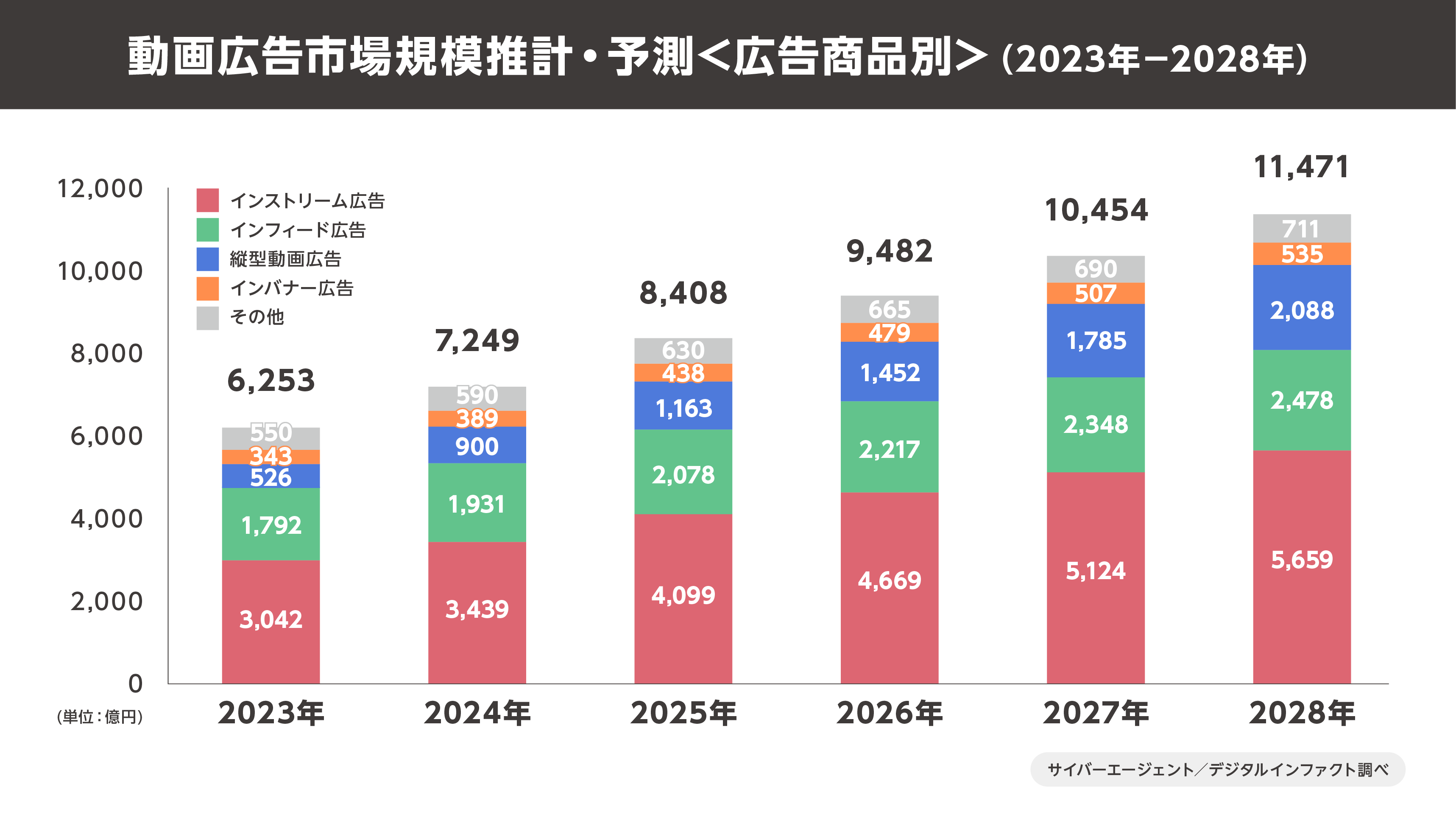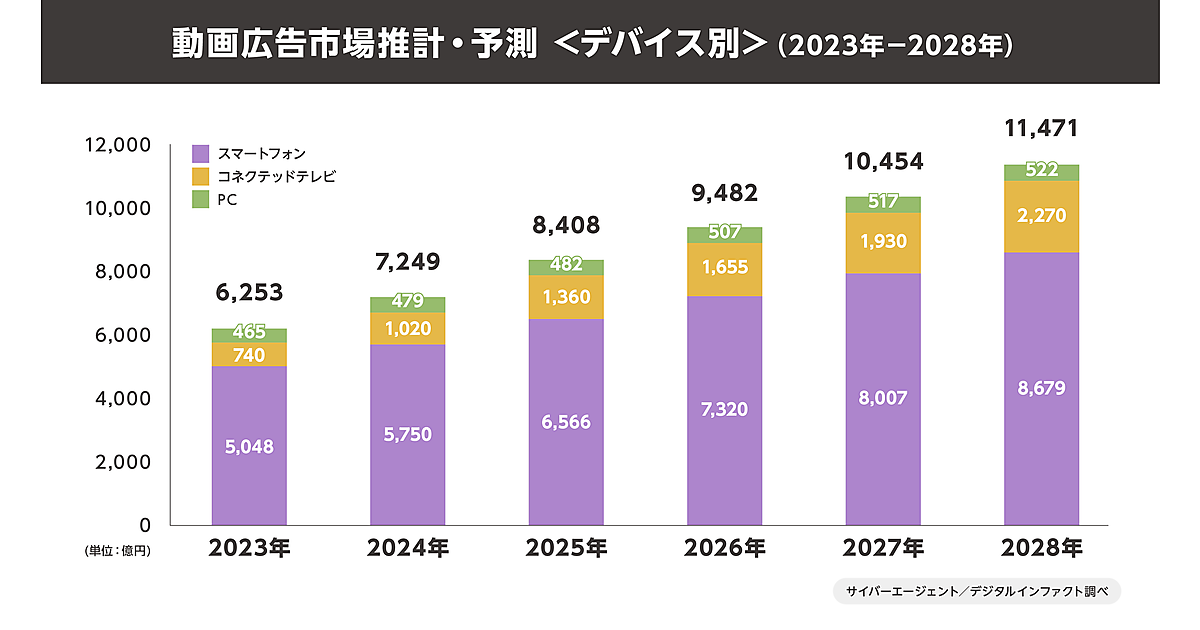 2028年には、動画広告市場は、1兆1,471億円に達する見込みだ。
