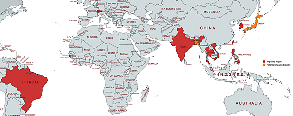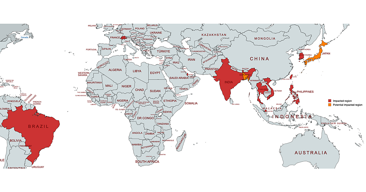 トレンドマイクロでは、ファイルの調査やネットワークトラフィックの分析を通じて、影響を受けた地域を特定。被害が確認された国は、インド、タイ、ベトナム、フィリピン、シンガポール、台湾、韓国、日本、ブラジルだった。バングラデシュも標的となる可能性があるという。