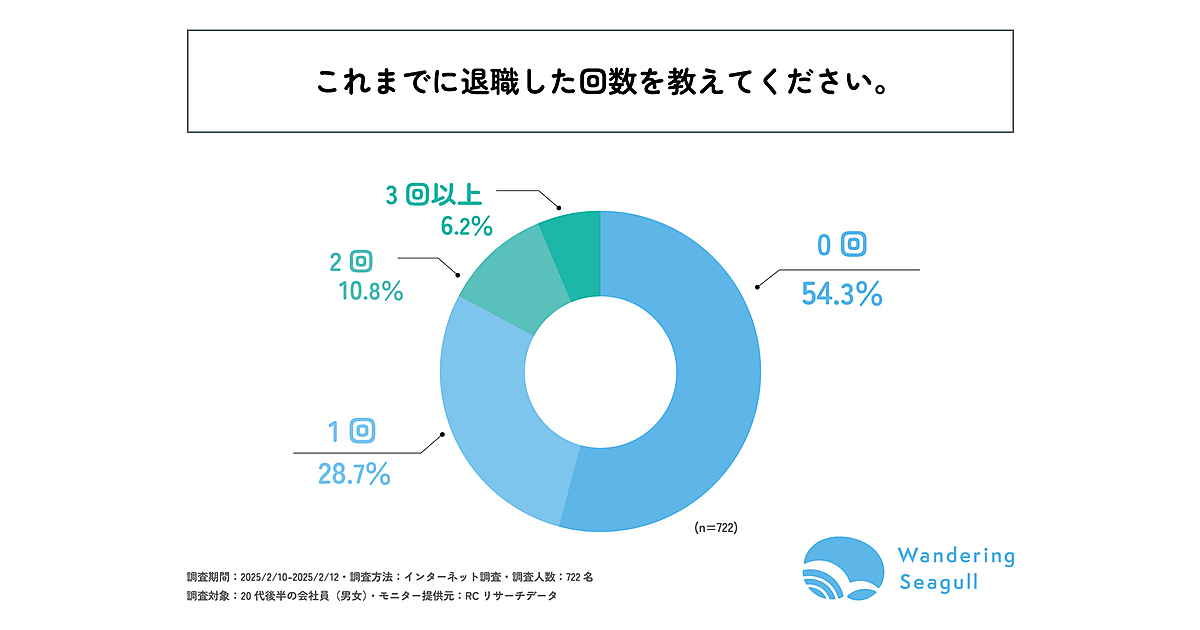 Wandering Seagullが運営する「退職だいじょうぶ」は、「若手社会人の退職意識や実態」に関する調査結果を発表した。20代後半(25歳~29歳)の会社員男女722人が回答している。