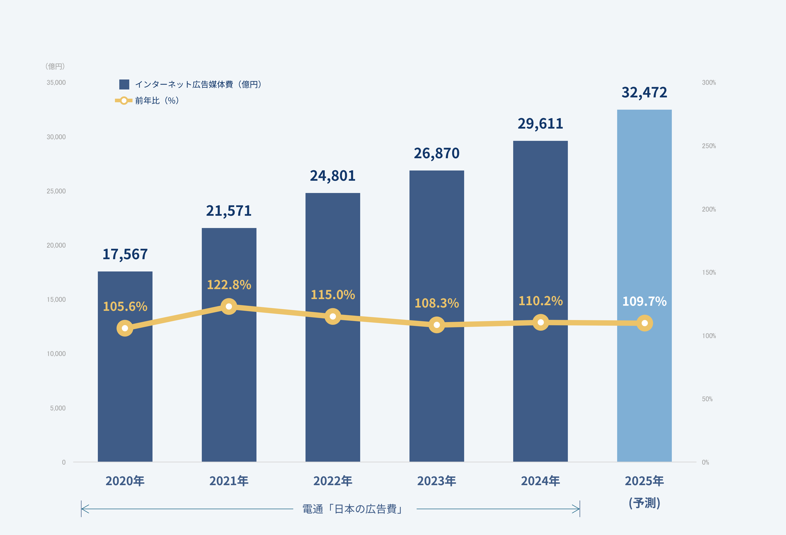 - その他のインターネット広告:上記以外のフォーマットのインターネット広告、メール広告、オーディオ(音声)広告など。タイアップ広告を含む