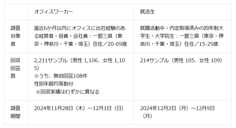 - 【調査時期】オフィスワーカー:2024年11月28日~12月1日、就活生:2024年12月2日~9日