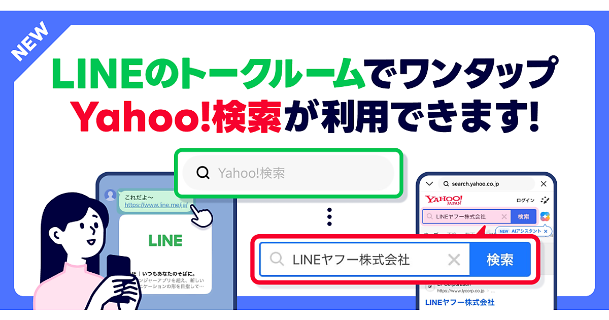 LINEヤフーは、コミュニケーションアプリ「LINE」の「トークルーム」で送受信したリンク先で「Yahoo!検索」ができる機能の提供を始めたと3月25日に発表した。ユーザーは会話の流れのまま他のアプリを開くことなくLINE内で情報を検索できるようになった。