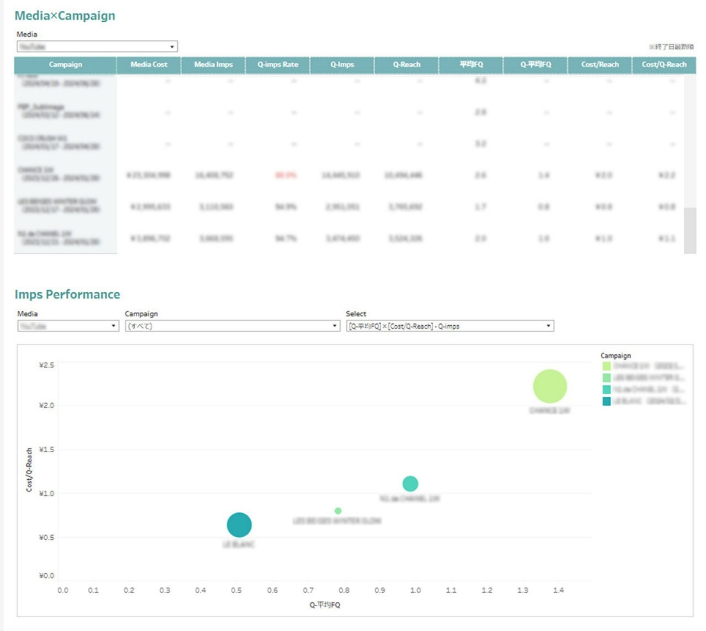 Health Checkerはブランドスータビリティ(ブランド適合性)やアドフラウド(広告詐欺)などアドベリフィケーションの重要指標をレーダーチャートで表示。媒体特性を考慮した企業の立ち位置を確認できる。一方、Quality Reach Reportは各プラットフォーマー・アドベリフィケーションツール・リーチ計測ツールの3つのデータのバブルチャート。複数ツールの指標を統合的に可視化し、媒体特性を踏まえた予算配分の最適化を支援する。