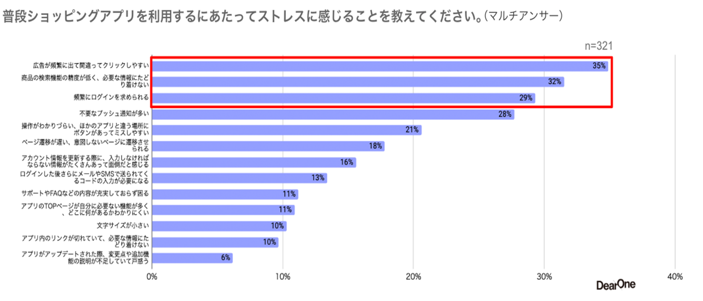 NTTドコモの子会社であるDearOneは、一般消費者に対して「ショッピングアプリのUI/UXアンチパターン」の調査を実施した。