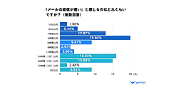 さらに「メールが苦手」とした人にその理由を聞くと、「そもそもメールを送ることに慣れていないから」43.8%が最多で、「メール特有の挨拶やマナーが分からない」38.6%がそれに続いた。メール独自の構文や敬語などが障壁になっているようだ。また「LINEなどのSNSのように既読・リアクション機能がないため、返信が必要なのか、どこで会話を終わらせればいいか分かりづらい」30.1%という声も多く、メールとSNSを比べて不自由な点に慣れないという若年層も多いようだ。
