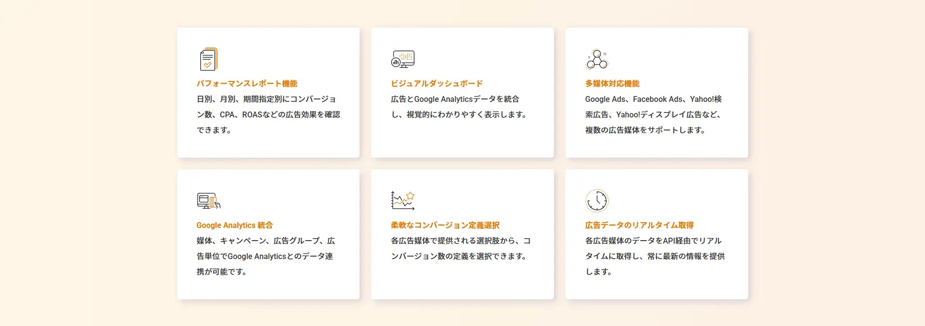 デジタル広告の多様化に伴い、企業のマーケティング担当者や広告運用者は「Google」「Yahoo!」「Facebook」「Instagram」などの広告媒体を横断して分析する必要がある一方、管理画面がそれぞれ異なり、データの一元管理が難しかった。加えて、Googleアナリティクスで広告の成果やユーザー行動を分析する時の広告データとの統合が煩雑という課題もあった。