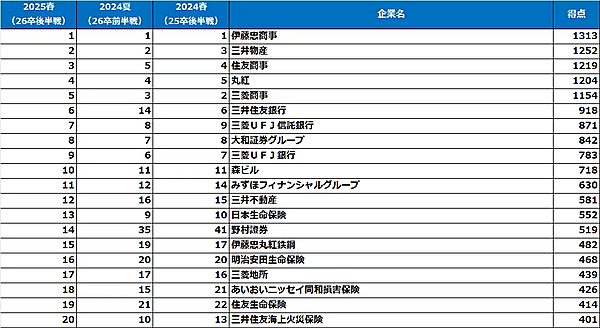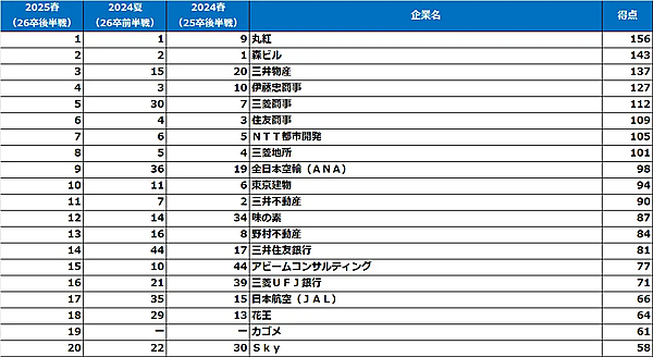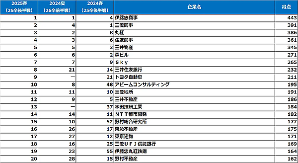 ダイヤモンド・ヒューマンリソースは、「2025年【春】(26卒就活後半戦調査)大学生が選んだ就職人気企業ランキング」を発表した。2026年3月卒業(修了)予定の大学生・大学院生5,344人が回答。前回調査は2024年夏(26卒就活前半戦)に行われた。