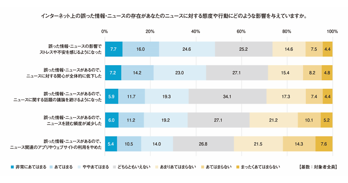 「インターネット上の誤情報や偽ニュース」でストレス感じる人が約5割