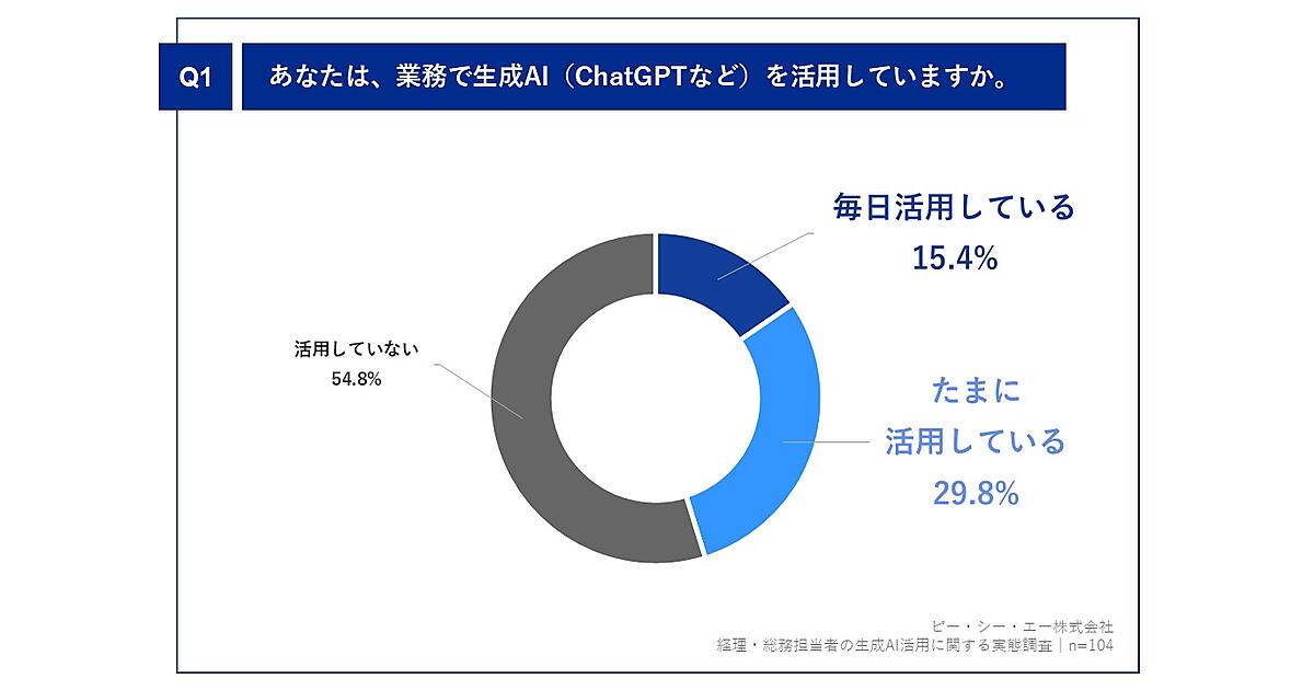 ピー・シー・エー(PCA)は、「経理・総務担当者の生成AI活用」に関する調査結果を発表した。従業員数50名~500名の企業の経理・総務担当者104人が回答している。
