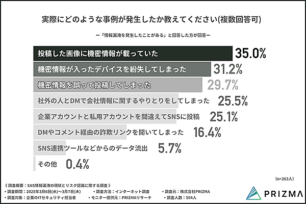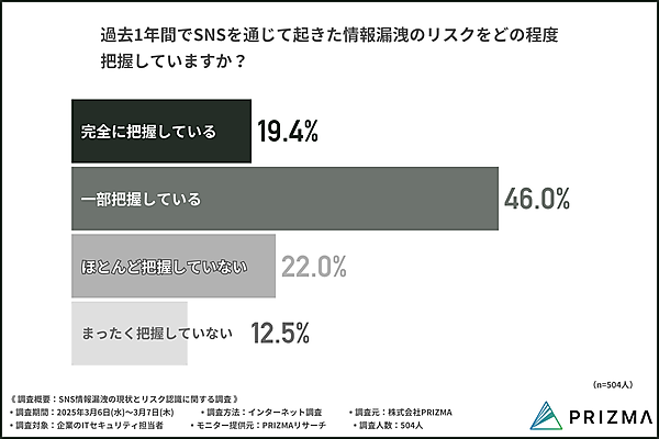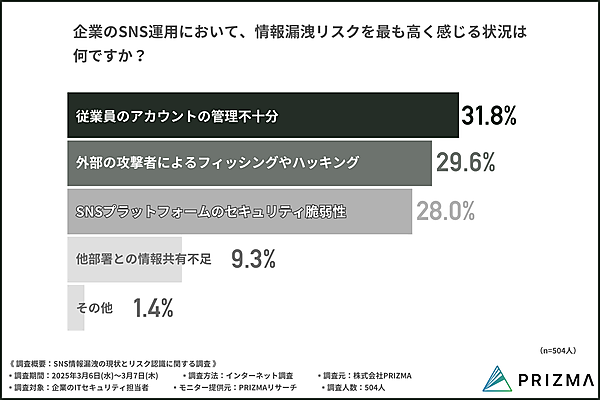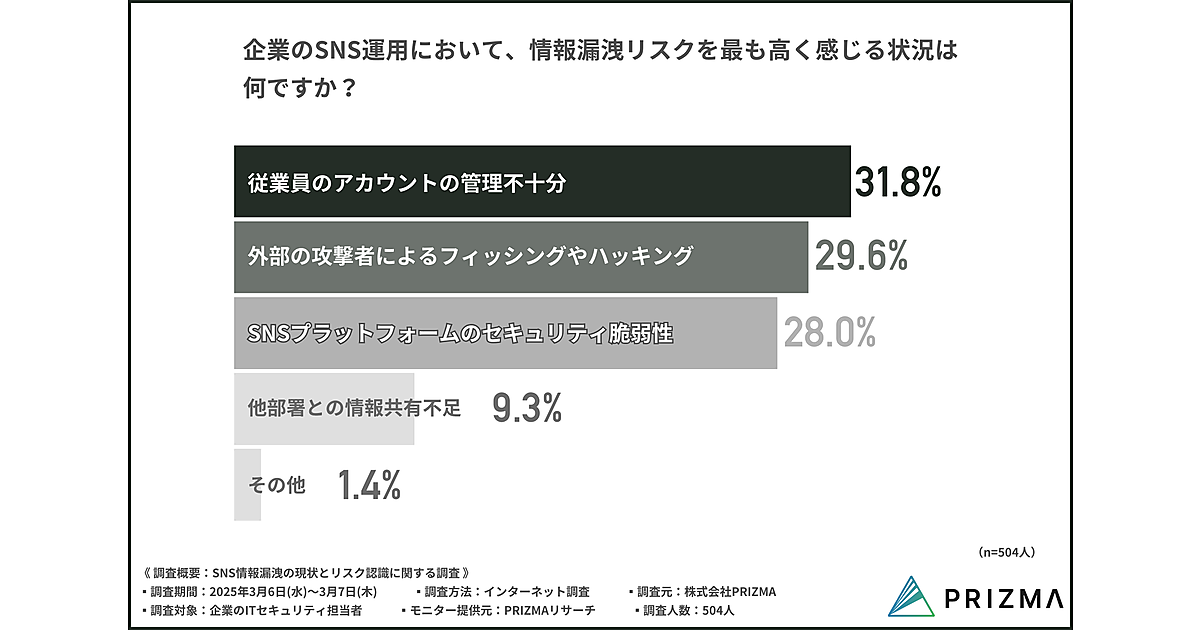 PRIZMAは、「SNS情報漏えいの現状とリスク認識」に関する調査結果を発表した。企業のITセキュリティ担当者504人が回答している。