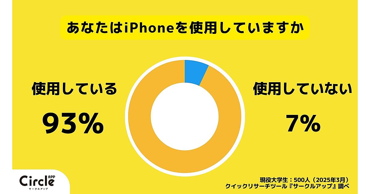 まず「あなたはiPhoneを使用していますか」と聞くと、93%の学生が「使用している」と回答しており、圧倒的なiPhoneのシェア率が判明した。またこれら使用者に「iPhone以外の購入を検討しましたか」と聞くと、92%が「iPhone以外の購入を検討していない」と回答しており、その支持の高さがうかがえる結果となった。