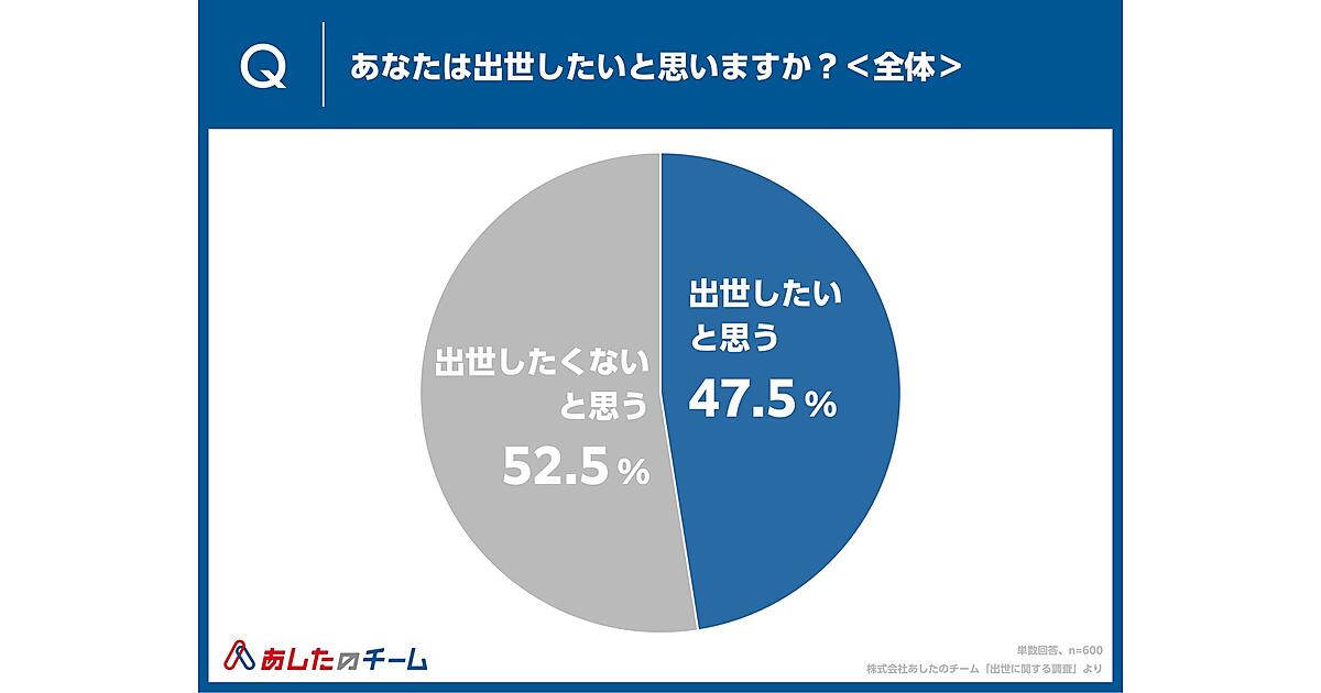 あしたのチームは、「出世」に関する調査結果を発表した。20代~40代の会社員男女600人が回答している。