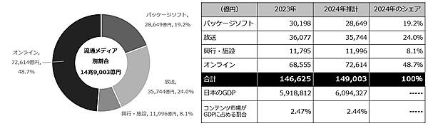 それによると、2024年の日本のコンテンツ市場規模は、各分野合わせて前年から微増の14兆9,003億円で、過去最大となった。ただし円安が進んだためドル建てでは2022年の規模を下回る結果だった。