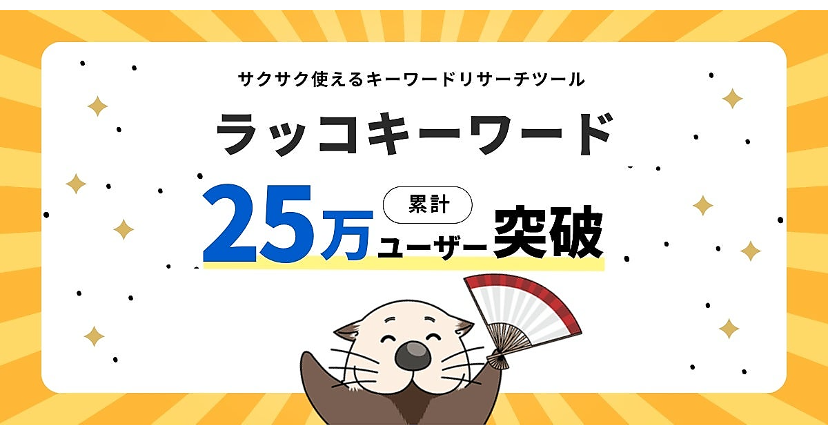 マーケティングリサーチツールなどを提供するラッコは、同社のキーワードリサーチツール「ラッコキーワード」の累計利用者が4月に25万人を超えた、と4月28日発表した。同ツールの前身「関連キーワード取得ツール」の展開を始めてから約13年で達成。主要な機能や活用シーン、導入事例、料金プランをまとめたサービス紹介資料を公開した。