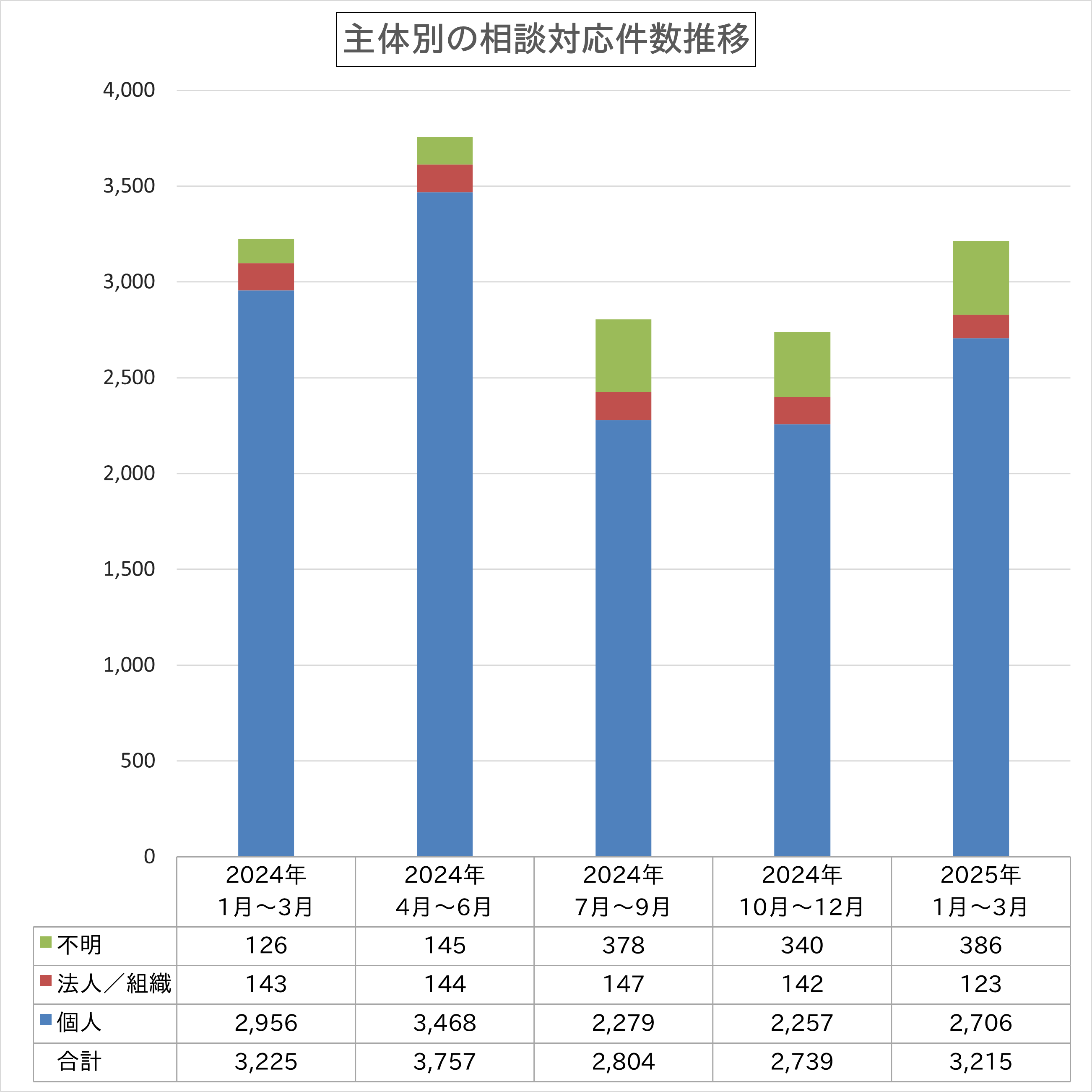 それによると該当四半期の相談対応件数は3,215件で、前四半期(2024年10月~12月)から約17.4%増加した。