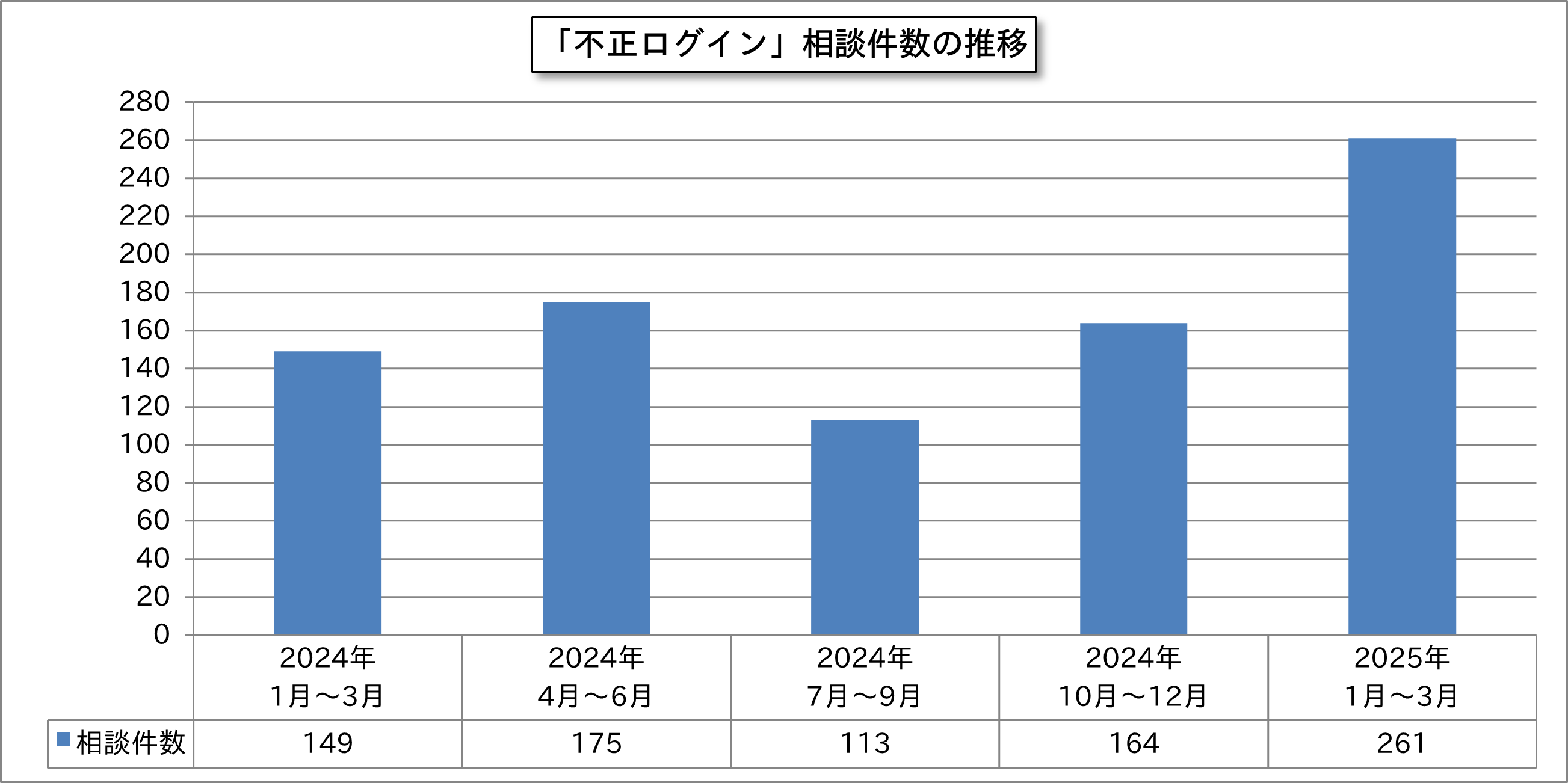 「不正ログイン」に注目すると、前四半期から約59.1%増の261件。Facebook、Instagramなどに不正ログインされログインできなくなったという相談が多く寄せられているとのこと。