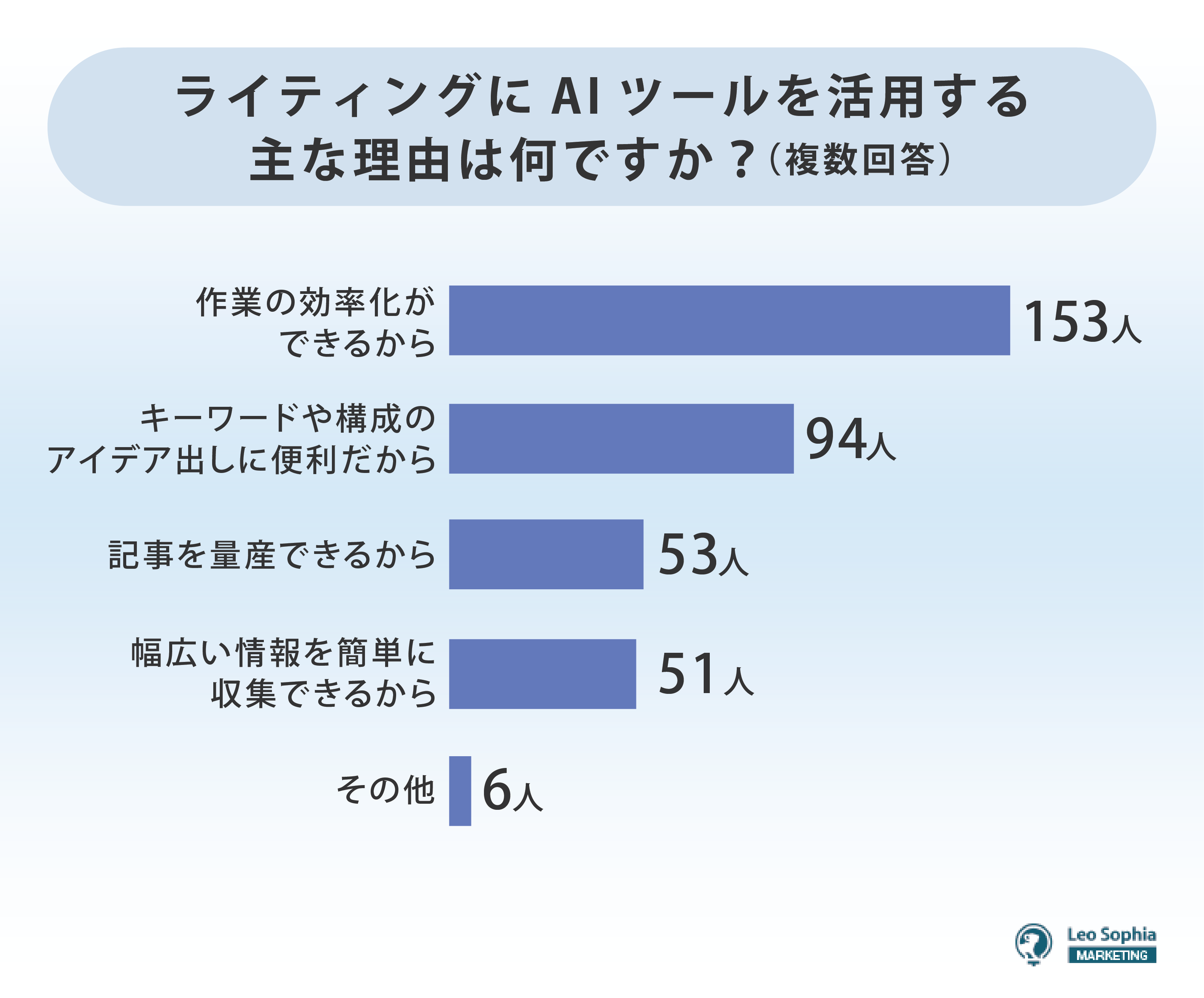 ライティングにAIツールを活用する理由としては、「作業の効率化ができるから」が圧倒的に多く、ついで「キーワードや構成のアイデア出しに便利だから」と続いた。