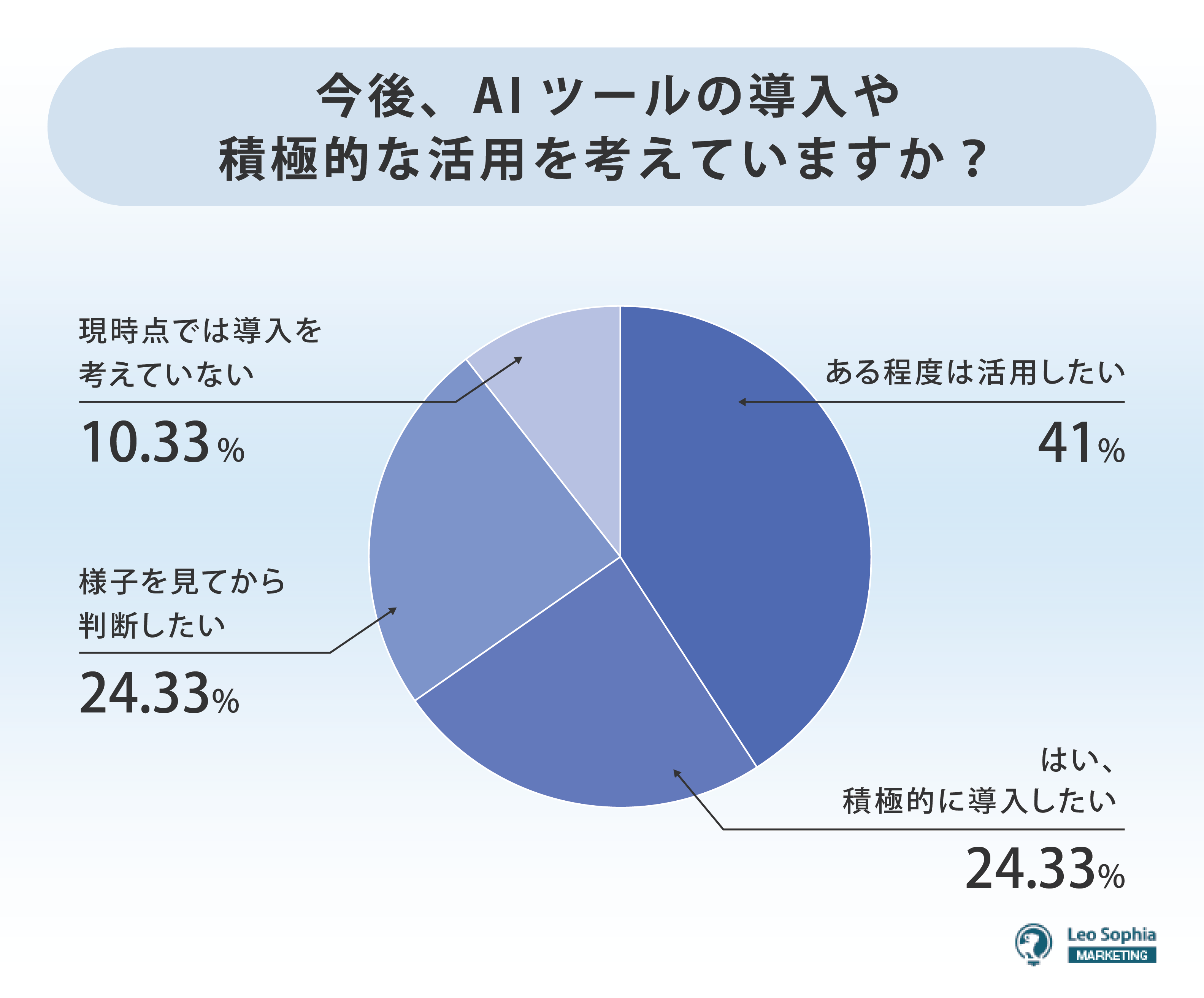 今後のAIツール導入や活用意向を聞くと、合計で65.33%が「積極的に導入したい」または「ある程度は活用したい」と回答した。