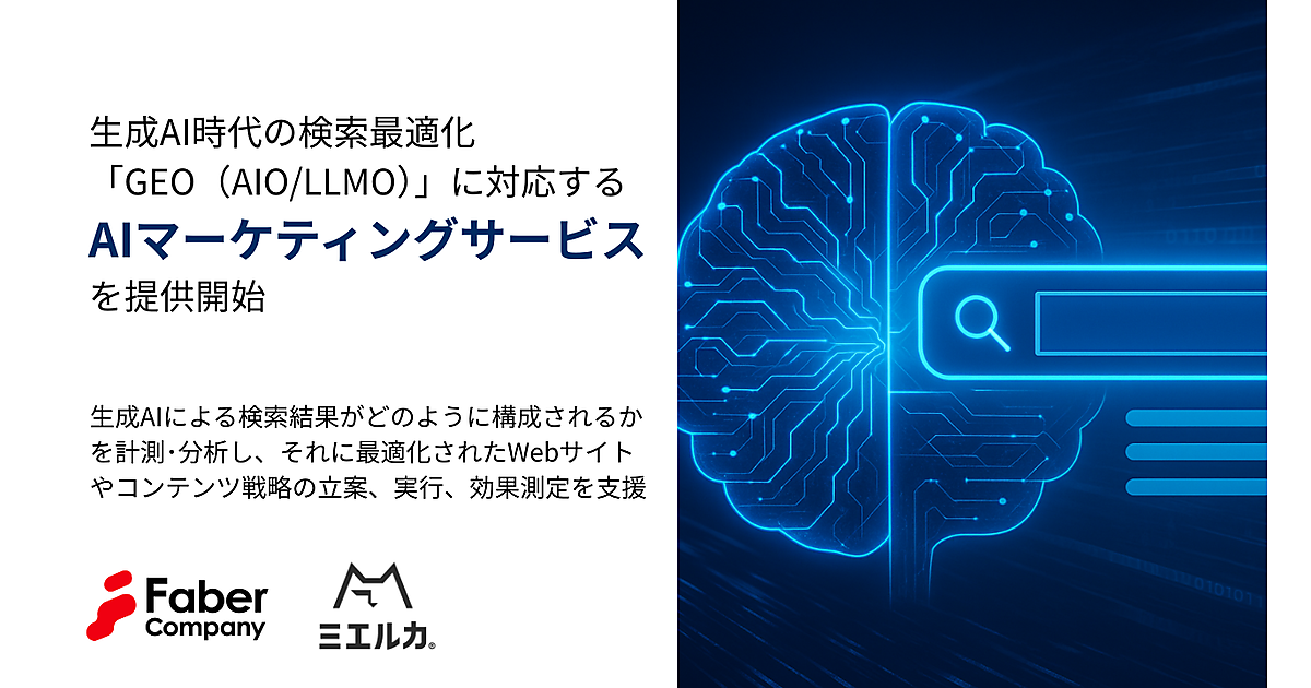 ウェブマーケティング支援事業のFaber Company(ファベルカンパニー)は、生成AI(人工知能)によって変わりつつある検索体験に対応した施策を支援する「AIマーケティングサービス」を始める、と5月13日発表した。GEO(Generative Engine Optimization)、AIO(AI Optimization)、LLMO(Large Language Model Optimization)と呼ばれる生成エンジン最適化をサポートする。