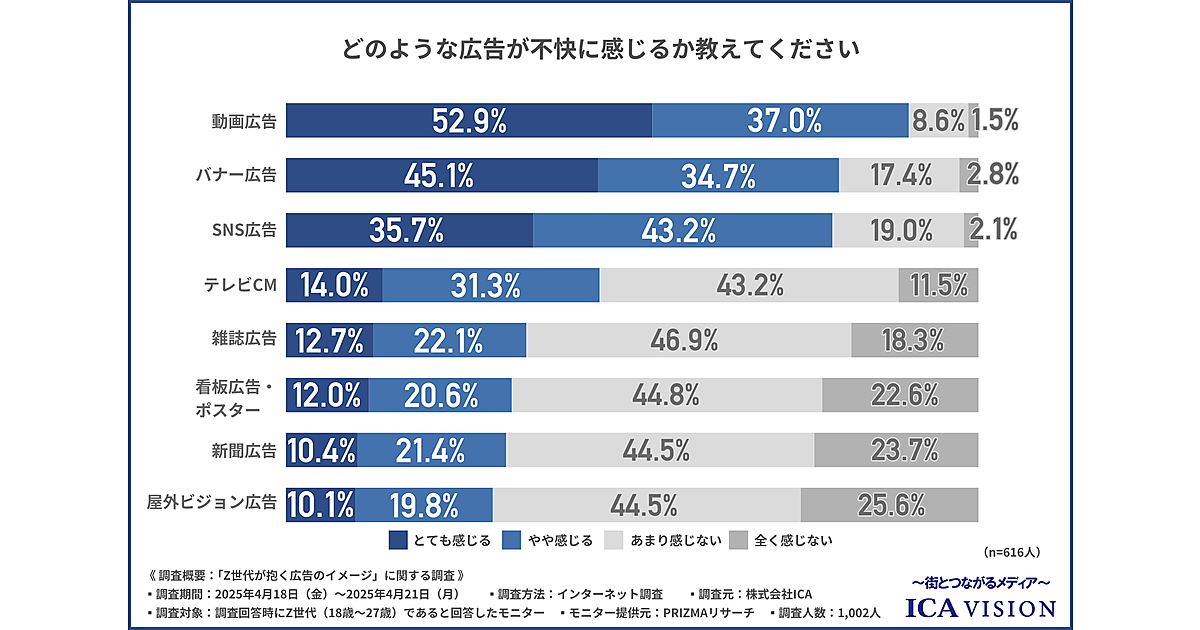 ICAは、Z世代(18歳~27歳)の1,002人を対象に、「Z世代が抱く広告のイメージ」に関する調査を実施した。