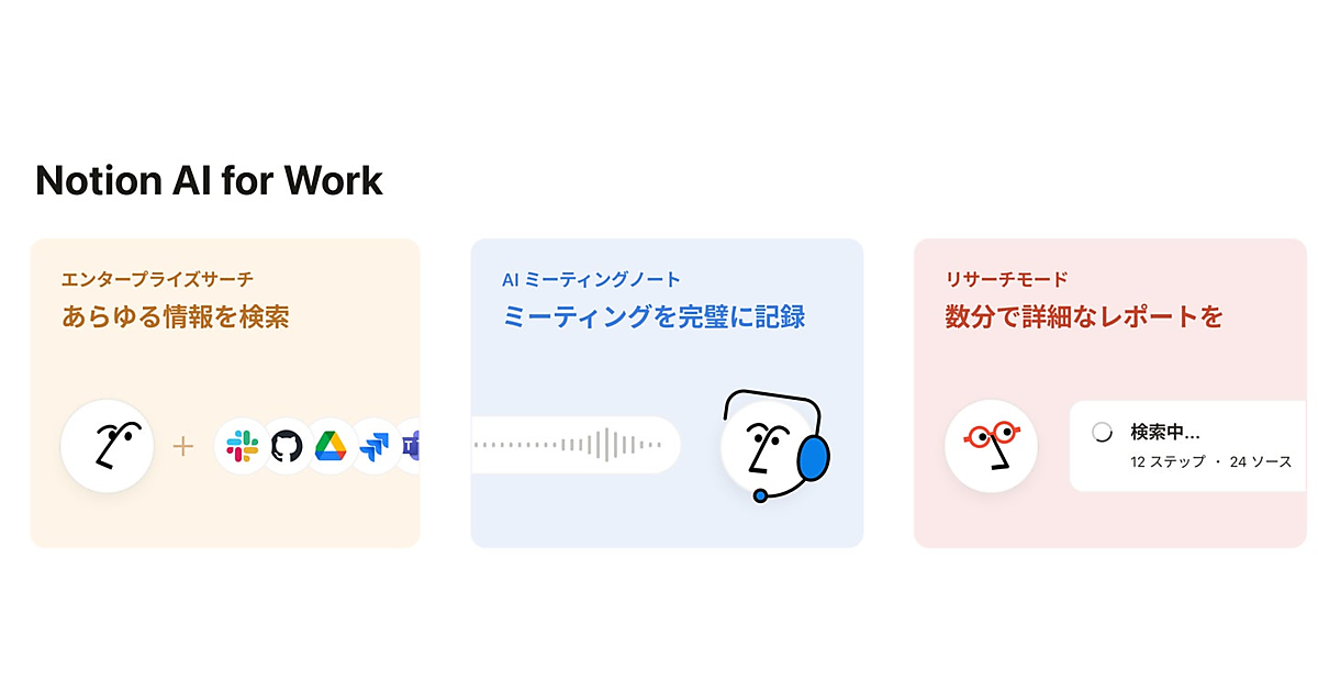 コラボレーションソフト「Notion(ノーション)」を展開する米国Notion Labsの日本法人、Notion Labs Japanは、米国本社がビジネス向けの新機能を統合したAI(人工知能)ワークスペース「Notion AI for Work」を5月13日(米国時間)に発表した、と同日公表した。連携先の外部アプリの拡充や会議の文字起こしなど業務に役立つ機能を強化した。