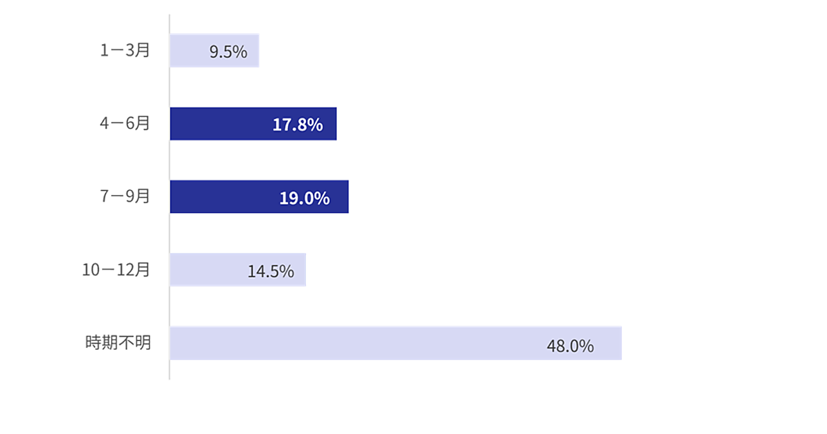 不正利用被害が発生した時期としては、「7~9月」が19.0%で最も多く、ついで「4~6月」が17.8%となった。旅行や大型連休などの消費活動が活発化する時期が狙われているようだ。