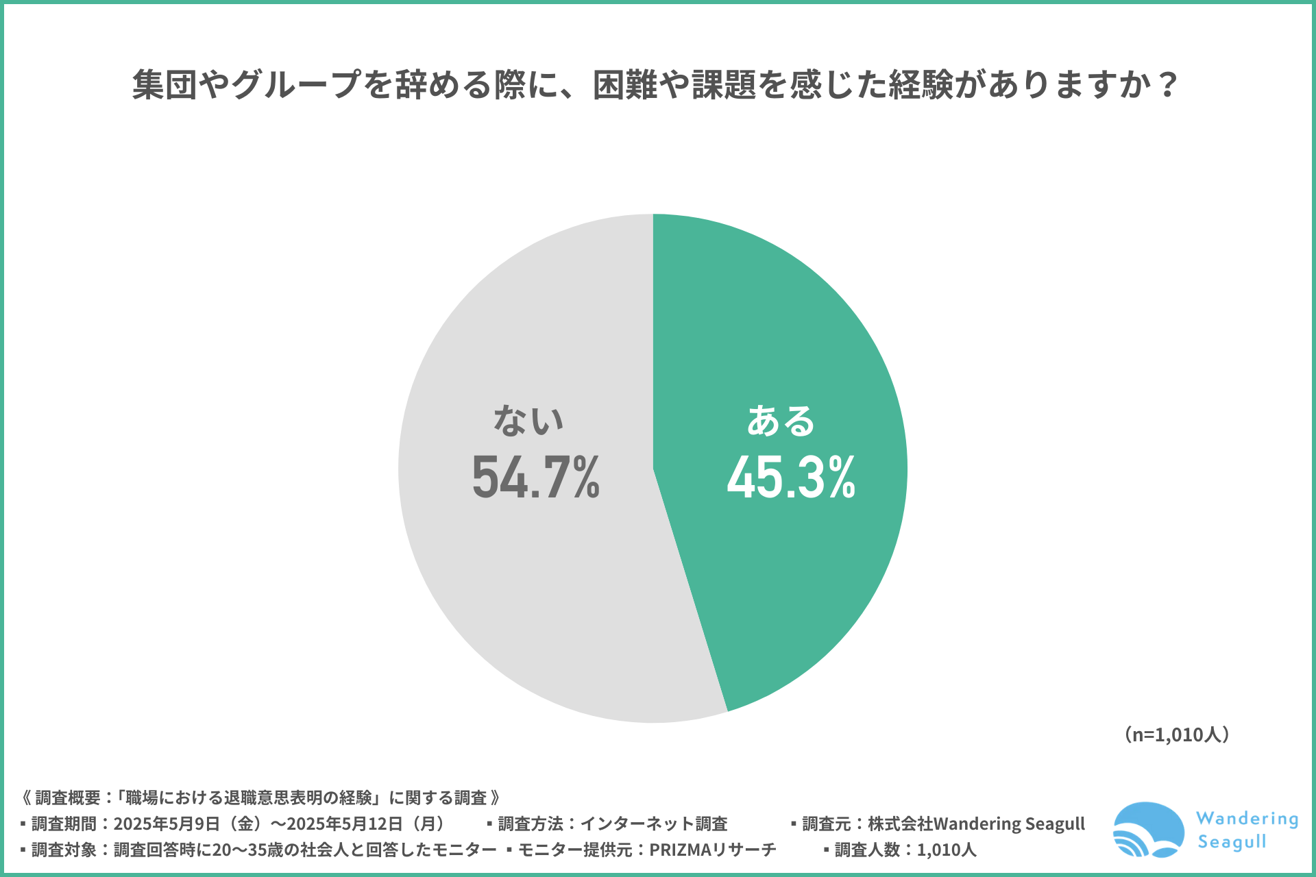Wandering Seagullは、20〜35歳の社会人を対象に「職場における退職意思表明の経験」に関する調査を実施した。