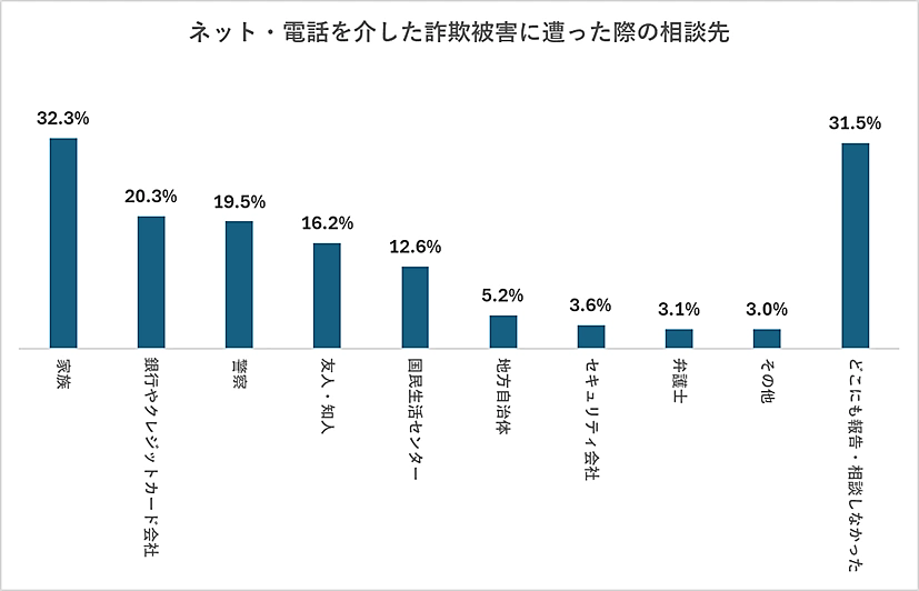 詐欺の被害に遭ったにもかかわらずどこにも報告・相談しなかった人が3割超も