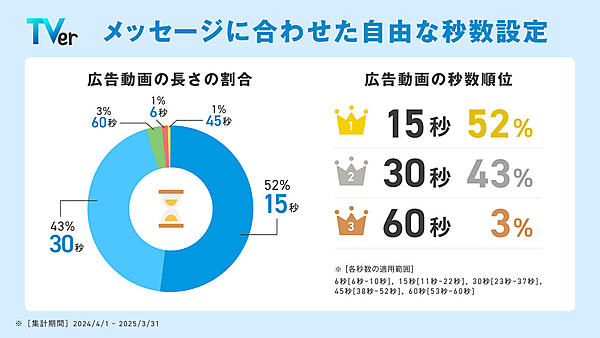 TVerは、2024年度(2024年4月~2025年3月)のTVer広告の実績を振り返るレポート「数字で見るTVer広告」を公開した。