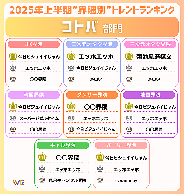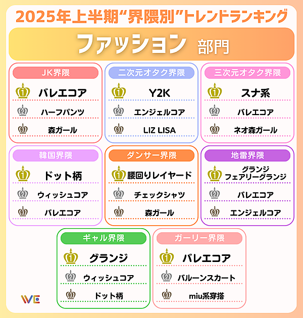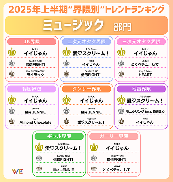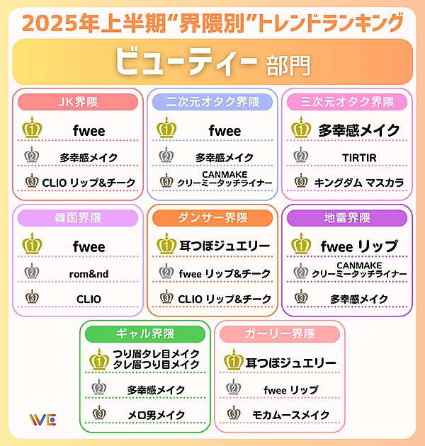 ウィゴーのヒト・コト・モノ・バ研究所(WE LABO)は、「Z世代が生み出す8つの“界隈別”、2025年上半期トレンドランキング」を発表した。WEGOが運営するSNSコミュニティ9アカウントのフォロワー124,927人が回答している。