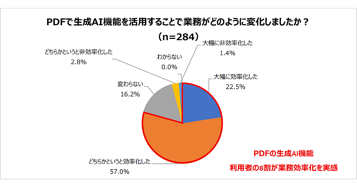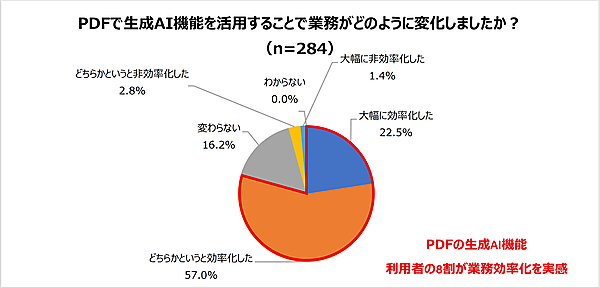 実際、生成AI機能の活用によって業務が効率化したかを聞くと、合計で79.5%が業務効率化を実感していることが明らかになった。