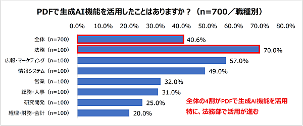 法務部門で活用進む? PDFの生成AI利用実態