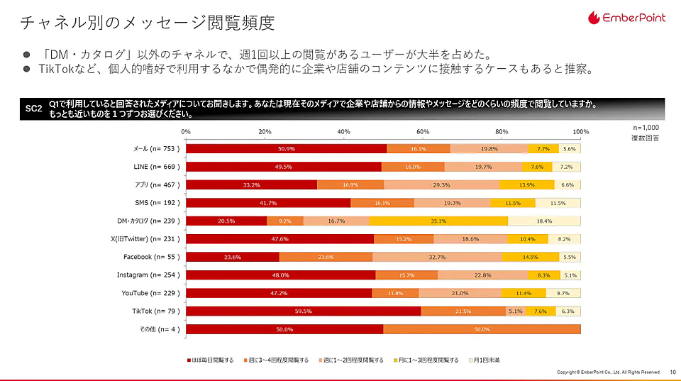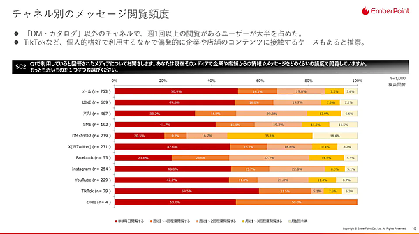- チャンネル別:メッセージ受信時の行動、活用方法など