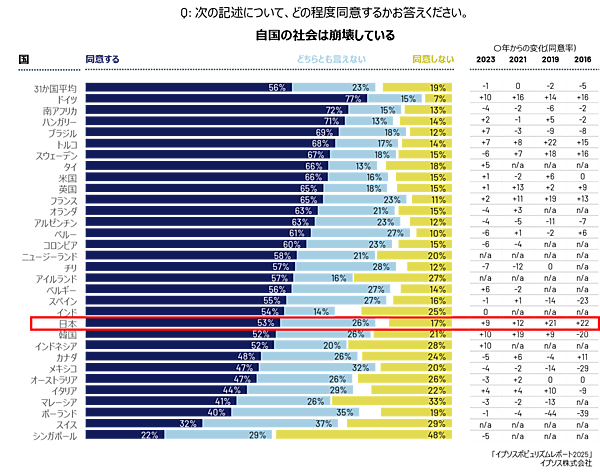 イプソスは、「ポピュリズムレポート2025」を公開した。日本を含む世界31か国23,228人が回答している。