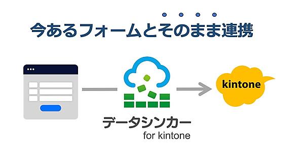 kintoneはクラウドサービス事業のサイボウズが展開。ITの知識がなくても自社業務に対応したアプリが作成できる。kintoneと外部のウェブフォームを連携させるには、専用フォームの再構築や通知メールの手作業による転記が必要になるケースが多いが、DataSyncer フォーム to kintoneは既存のフォームをそのまま生かしながら連携が可能になる。